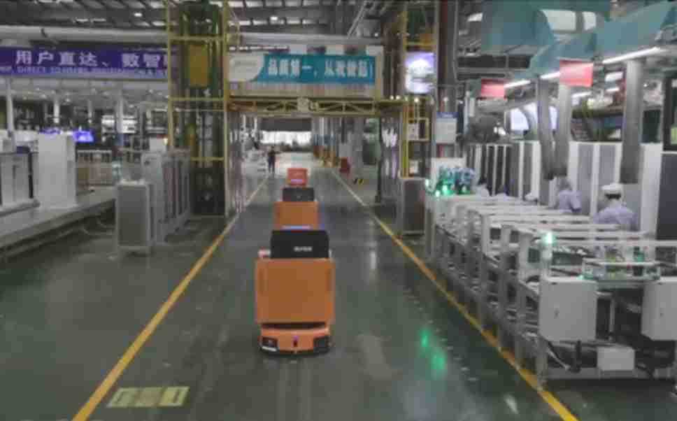 为车载冰箱物流配送打造的智能解决方案,,包含产中物流通过潜伏举升AMR搬运至线边,,产后成品物流智能仓储,,流程包含产中物流智能齐套入库,,,,线边安灯叫料AMR智能配送至线边,,,,成品入库、、、出库,,,,通过无人堆高车机器人,,,,智能仓储管理替代人工作业管理,,实现更高存储、、、更高效率、、、、更具柔性化的解决方案。。。